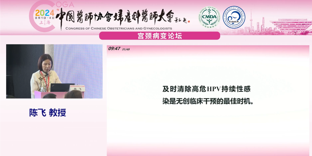 北京協(xié)和醫(yī)院陳飛教授就《清除高危HPV無創(chuàng)臨床干預(yù)》為題進(jìn)行報告: