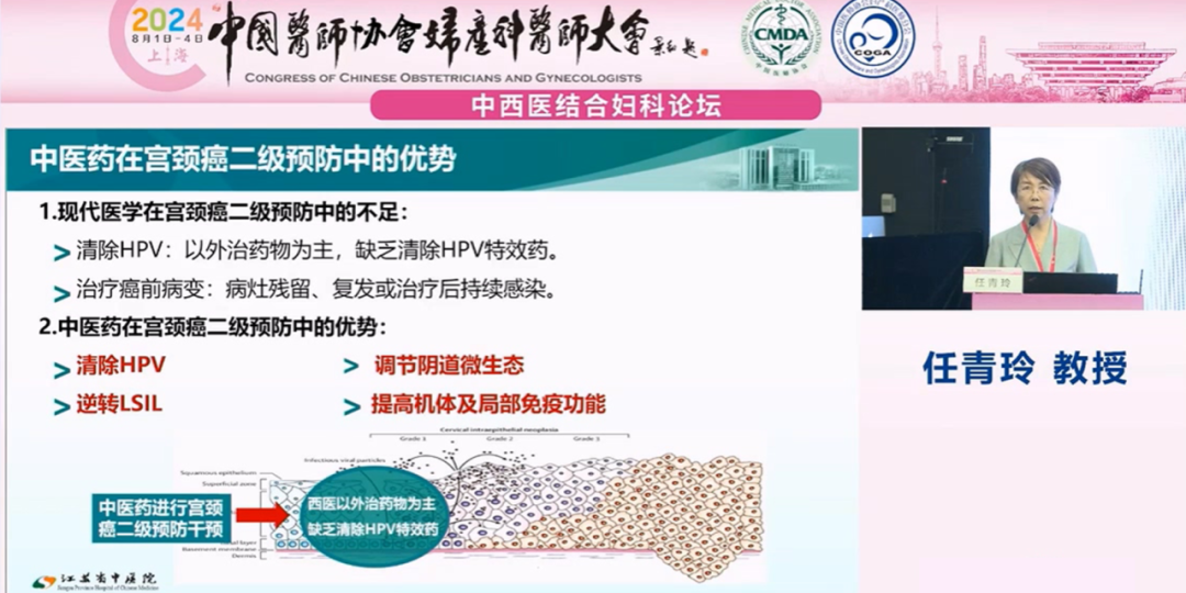 江蘇省中醫(yī)院任青玲教授就《中西醫(yī)結合宮頸癌防治一體化平臺建設》為題進行報告:
