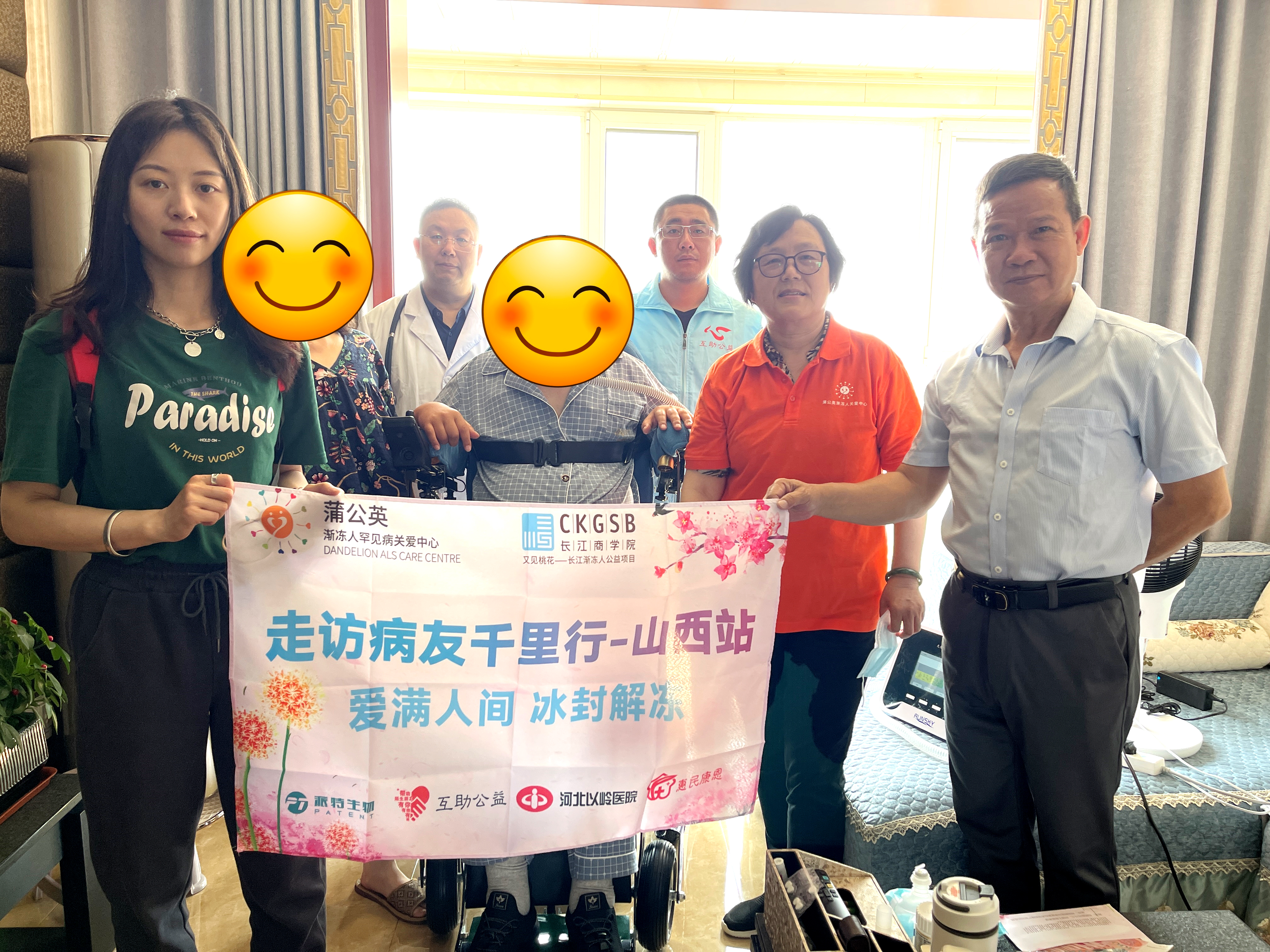 本次活動(dòng)中,派特生物集團(tuán)再次捐贈(zèng)善款和物資,以派特生物黨支部的名義與蒲公英組織及其它志愿組織和志愿者一道,從南到北跨越1800公里,為這些默默抗?fàn)幍募彝バ切侵?,希望以點(diǎn)滴匯聚的溫度,以力所能及的方式,提供人力物力上的支持,為山西地區(qū)的漸凍人朋友和家屬們,融化身體和生活帶來(lái)的堅(jiān)冰。