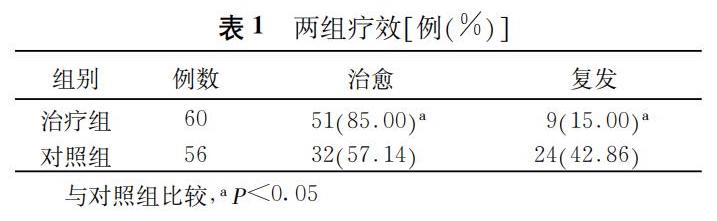 治療組治愈率85%?明顯高于對(duì)照組的54?14%( P<0?05)?并且不良反應(yīng)輕微。