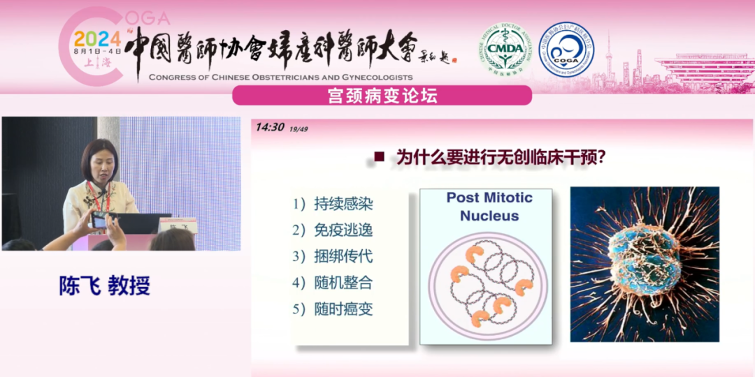 北京協(xié)和醫(yī)院陳飛教授就《清除高危HPV無創(chuàng)臨床干預(yù)》為題進(jìn)行報告: