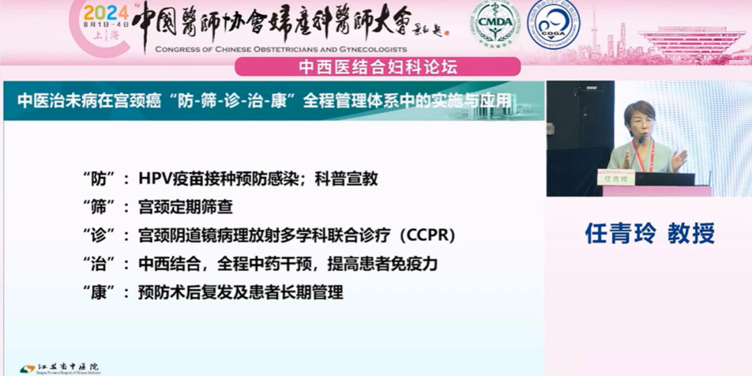 江蘇省中醫(yī)院任青玲教授就《中西醫(yī)結合宮頸癌防治一體化平臺建設》為題進行報告:
