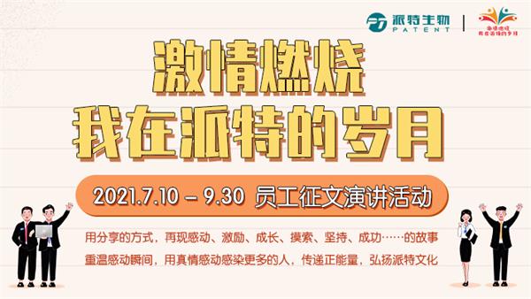 “激情燃燒-我在派特的歲月”員工征文演講活動(dòng),經(jīng)過(guò)征文評(píng)選、演講初賽評(píng)選等環(huán)節(jié)的層層選拔,現(xiàn)已在全國(guó)范圍內(nèi)評(píng)選出15位選手進(jìn)入演講總決賽。