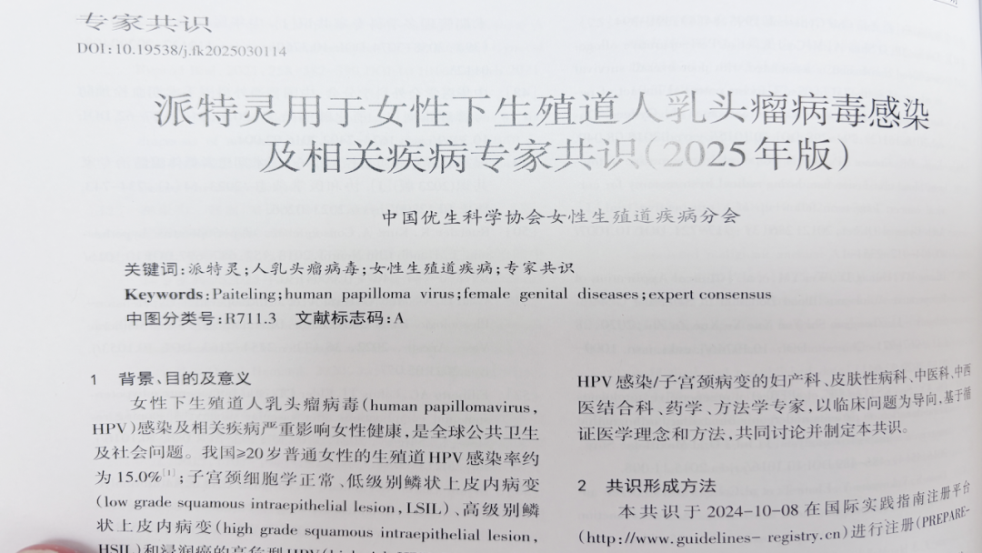近日,《中國實用婦科與產(chǎn)科雜志》發(fā)布了名為《派特靈用于女性下生殖道人乳頭瘤病毒感染及相關(guān)疾病專家共識(2025年版)》文章。
