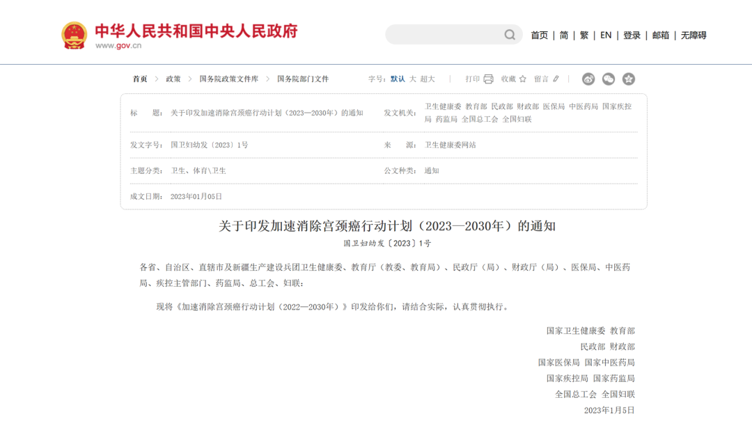 ▲ 中國十部門聯(lián)合:加速消除宮頸癌行動計劃(2023-2030年)